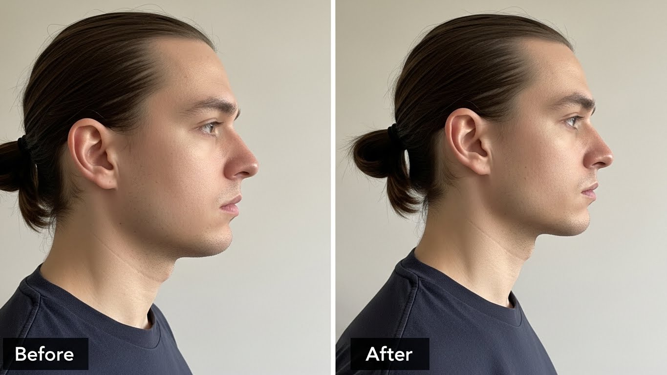 "The Forward Head Posture Fix" - Correct the hidden problem destroying your jawline [Addresses critical foundation issue most guys miss]